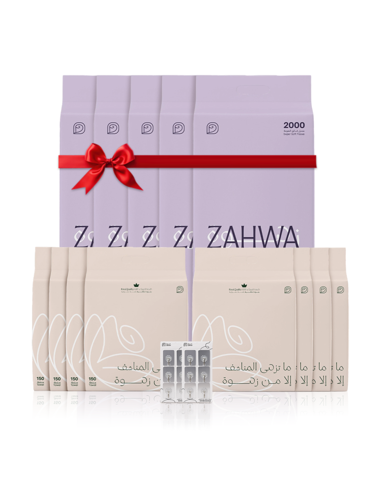 بكج مناديل 2000 جامبو 5 عبوات + بكج مناديل ناعمة كلاسيك 32 عبوة + بكج مناشف ناعمة معلقة 4 عبوات + شحن مجاني + 12 علاقة هدية.